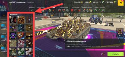 | Обвес — Внешнее дополнение к визуальному стилю машины, украшающее его, а иногда и реагирующее на происходящее в бою. Доступ к нему возможен в соответствующем разделе вкладки «Камуфляж» в Ангаре на всей технике начиная с V уровня, за исключением некоторых машин. В игре представлено несколько редкостей обвесов —редкий и легендарный.