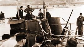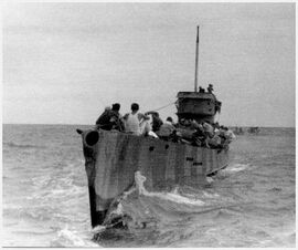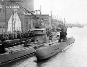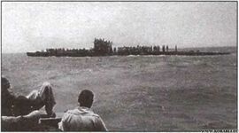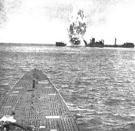 - ↑ «Волчья стая» — тактика, используемая группой подлодок для совместного поиска и нападения на конвои торговых судов. Принцип действия: подводные лодки занимали позиции, выстраиваясь в линию, пересекающую предполагаемый маршрут конвоя.