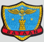 Надпись на щите: «ни один корабль не носит более прославленного имени. USS Bataan посвящён кампании, которая стала символом силы духа и выносливости свободных людей перед лицом непреодолимых трудностей. У него есть свидание с судьбой, которое нельзя отрицать...», Фрэнк Нокс, министр ВМФ США.