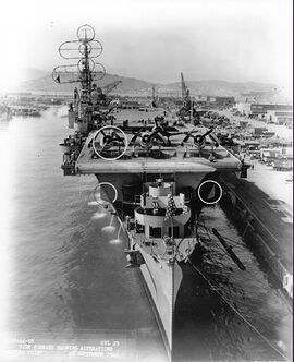 - В январе 1946 года на USS Bataan были добавлены два счетверённых зенитных установки 40-мм/60 Bofors Mk 2, 10 спаренных зенитных орудий 40-мм/60 Bofors Mk 1 и четыре одноствольных зенитных орудия 20-мм/70 Oerlikon Mk 10. Авиагруппа включала 30 самолётов, была добавлена еще одна катапульта.