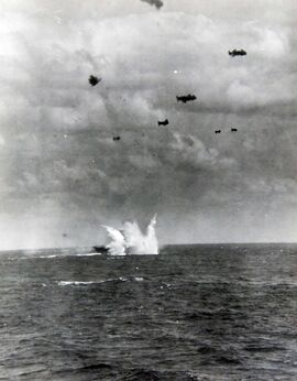21 апреля 1944 г. USS Bataan совершил пять вылетов истребителей для атаки японских самолетов и наземных объектов на Новой Гвинее. Пилоты заявили о попаданиях в многочисленные здания, зенитные орудия, прибрежные баржи и три самолета на земле. Тем временем ПВО авианосца сбил бомбардировщики Mitsubishi G4M1 Betty и Mitsubishi Ki-21 Sally.