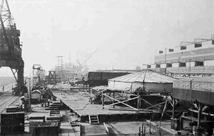 USS Illinois, заложенный 6 декабря 1943 года на Филадельфийской казенной верфи «Philadelphia Navy Yard» строился неспешно, к 1947 году центральная часть корпуса была собрана под верхнюю платформу, установлены котлы. Множество материалов и механизмов было складировано на верфи. Постепенно материалы расходовались на другие нужды, работы постоянно то останавливались, то возобновлялись. В 1958 году были демонтированы котлы и другие механизмы, а остатки конструкций постепенно были разобраны на стапеле.