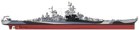 В середине 1945 года окраска практически всех кораблей от класса крейсеров и выше, была приведена к единому знаменателю - схеме окраски Measure 22 - надводный борт и палубы, в т.ч. надстроек, окрашивались в «военно-морской синий» 5-N (navy blue) цвет, вертикальные поверхности надстроек окрашивались в «светло-серый» (light gray) 5-L цвет. В такой окраске корабли типа Iowa закончили войну, вышли в резерв.