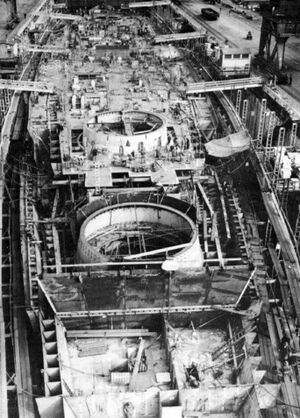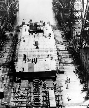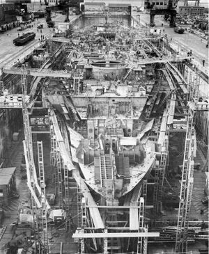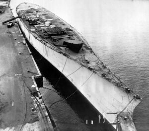 Набор корпуса выполнялся по продольной схеме, шпация составляла 1,22 м. Главные поперечные переборки делили его на 32 водонепроницаемых отсека. На большей части длины корпуса (от 36-го до 173-го шп.) имелось тройное дно. Три палубы - верхняя и две внутренних - были сплошными, три расположенные ниже платформы в середине разрывались машинно-котельными отделениями. В конструкции корабля наряду с клепкой широко применялась электросварка.