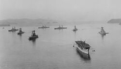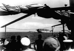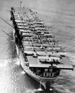 - ↑ Приведена дата вывода из боевого состава авианосца «Лэнгли»; в качестве углевоза «Юпитер» был исключён из состава ВМС США 24 марта 1920 года.