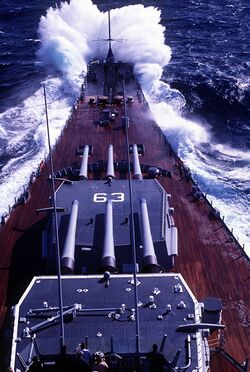Американцы считали теоретический чертеж кораблей типа Iowa близким к идеалу - практика показала, что мореходность линкора и его устойчивость как орудийной платформы заслуживают наивысшей оценки.