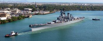 Линкор USS Missouri выходит из Перл-Харбора, 29 сентября 1945 г.