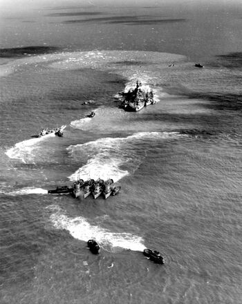 Линкор USS Missouri на учениях десантных сил. Пуэрто-Рико, март 1949 г.