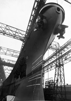 Корпус линкора USS Missouri перед спуском на воду. Верфь Нью-Йорка, январь, 1944 г.