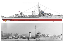 В то же время, на эсминце провели усиление противолодочного вооружения, увеличив запас глубинных бомб для кормовых бомбосбрасывателей до 23 штук, а на верхней палубе по бокам от кормовой надстройки установили шесть бомбометателей (39 глубинных бомб).